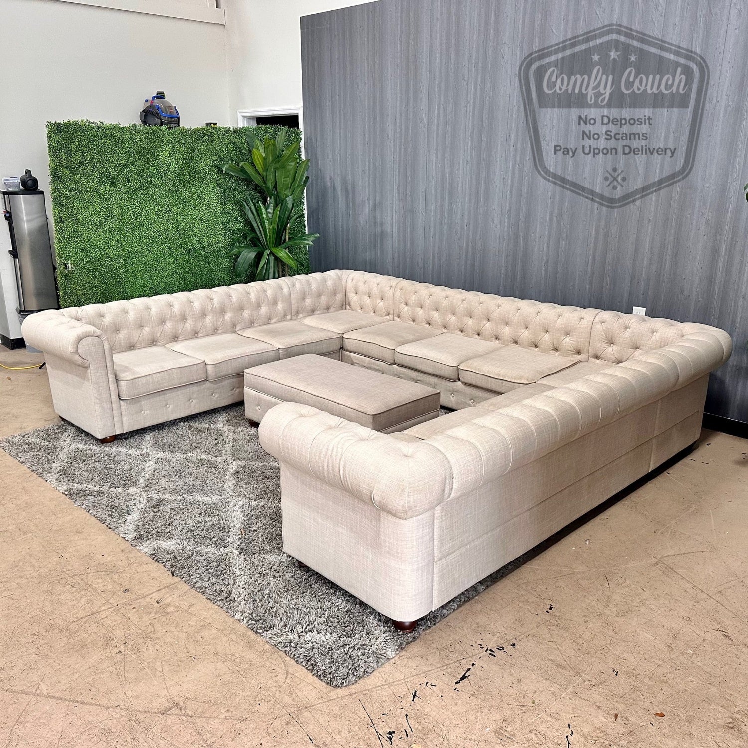🛋️ Huge Tufted Sectional & Ottoman w/ Storage